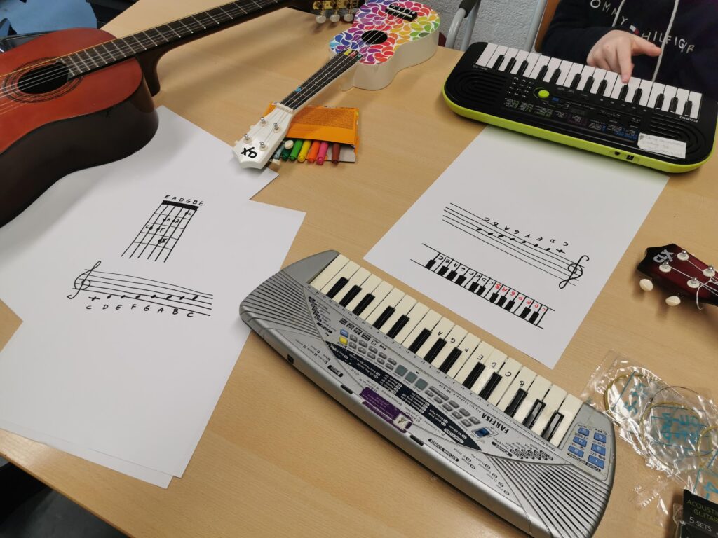 Met Ukeleles en Keyboardjes is de ontdekkingstocht gestart. Moeilijk hoor muziek, hoe kan je dat nou op je eigen manier opschrijven?!